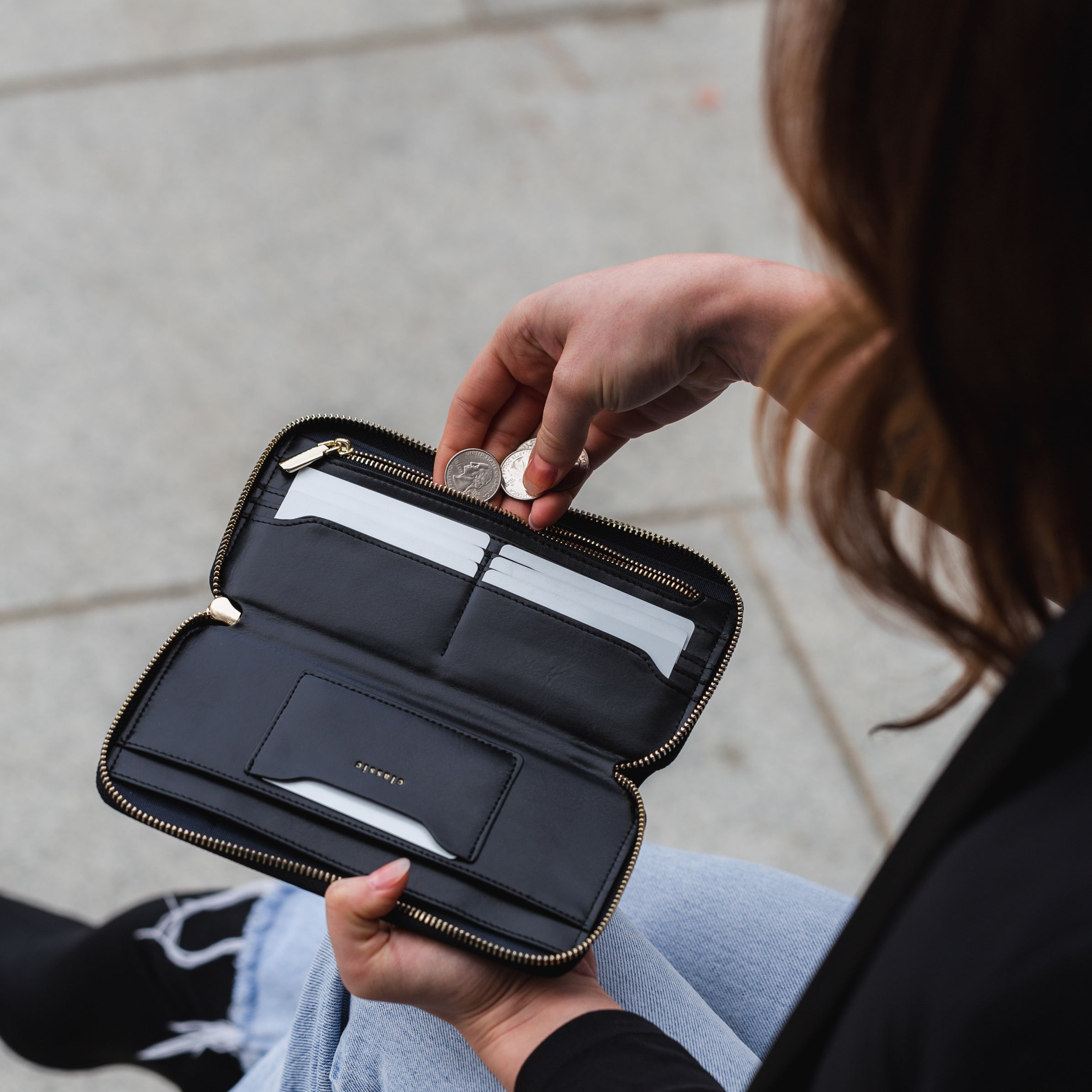 With RFID Wallet Function, Multiple Card Slots Soft-Lined Phone Holder, Mega Pockets, Strong Zipper, Slimline American Design AND Vegan Leather - it’s easy to fall in love with the new Serman Brands Classic Clutch.