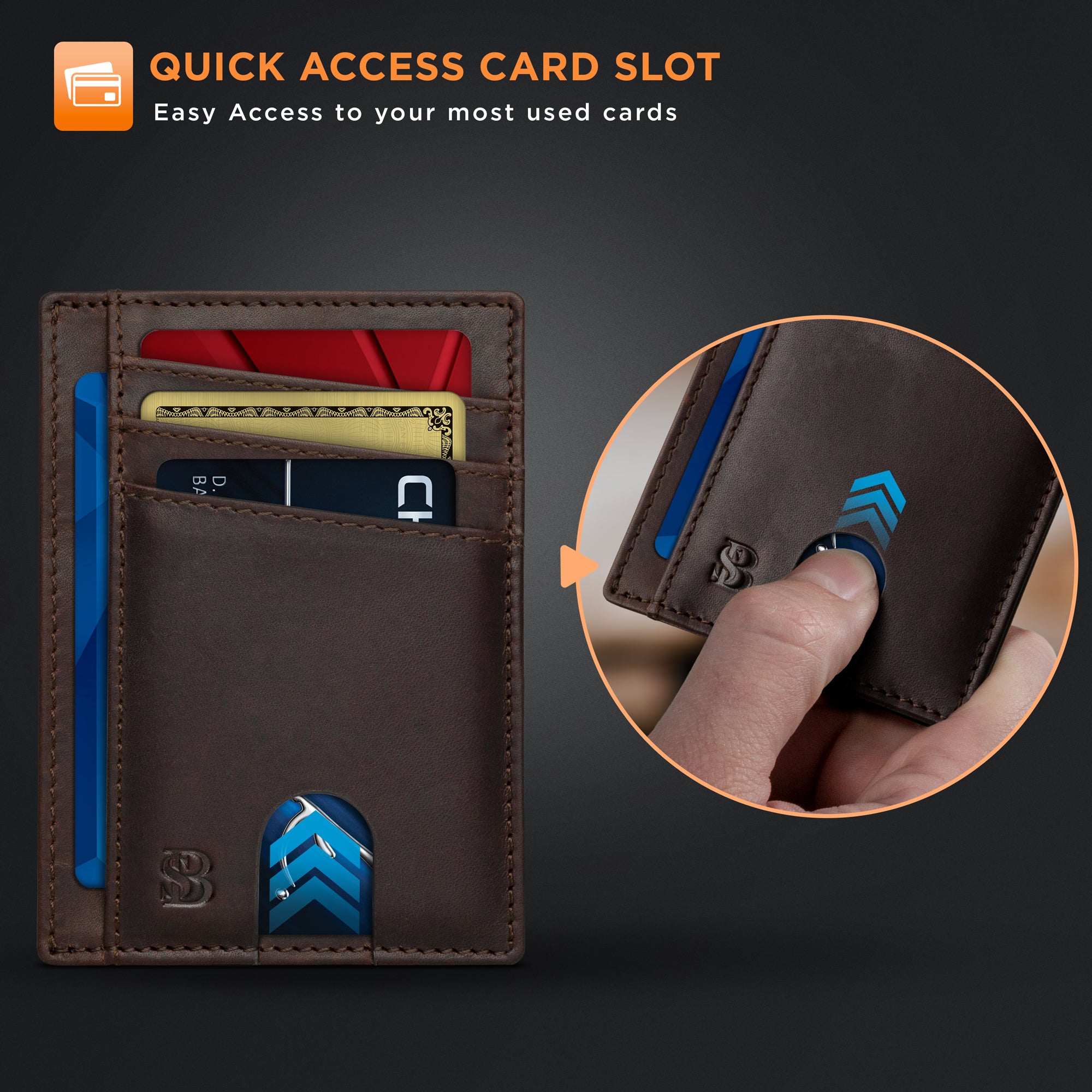 Slim design at 4.25 x 3.1”, half as thick as other card-only wallets.