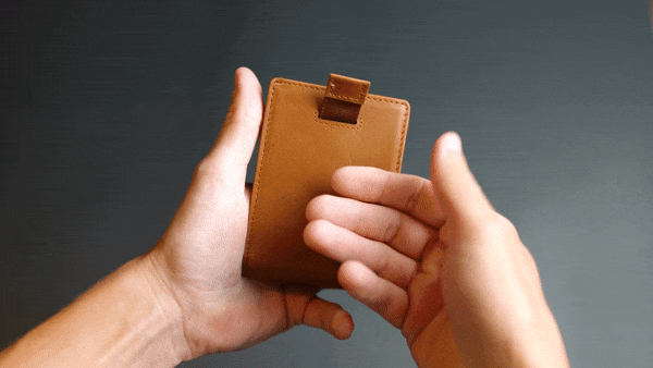 It holds 1-8 cards while maintaining a slim profile. Easily access 1-4 cards with a simple pull of the strap.